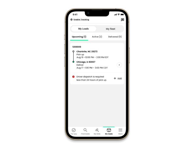 Select lanes, rates, picks-ups and deliveries for every load without time spent negotiating with brokers, eliminating wait time and the risk of rates falling.